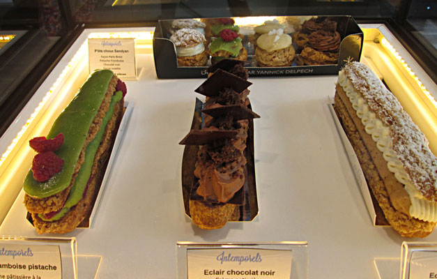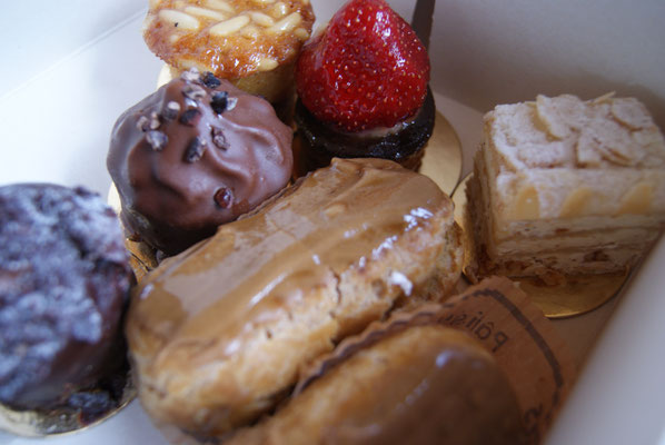 店頭にところ狭く並ぶパティスリーの品数、さすが本場です。ミルフィーユ、カヌレ、マカロン、パリ・ブレスト、ガトーバスク、名前もその店によってオリジナリティーの高いものあり、みているだけで幸福になってきます。